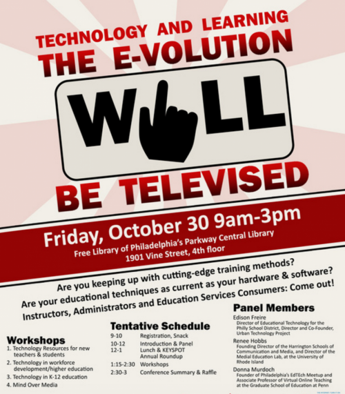 Renee Hobbs joins Edison Freire and Donna Murdock for a conversation about digital literacy at the Philadelphia Free Library on Friday, October 30, 2015. The event will be live-streamed here: