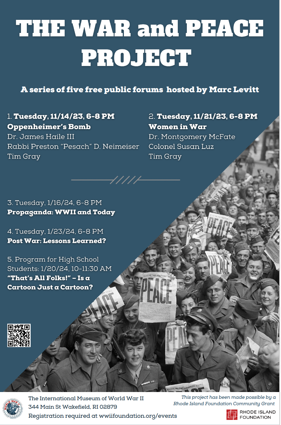A series of  free public forums organized by the non-profit World War II Foundation, hosted by Marc Levitt, writer, filmmaker, and