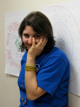 Aggie Ebrahimi Bazazis an MFA student in Film and Media Arts at Temple University. Aggie earned anMA degree in Literature and a Certificate in Women's Studies from TheUniversity of Georgia in 2007. While at UGA, Aggie served as a researchassistant for The Civil Rights Digital Library Initiative' Freedom on Film webpage, a digital mediaproject that aims to expand and enrich Civil Rights Movement pedagogy and toaid teachers and students in reading historical news footage. This projectfueled Aggie's interest in community building and cultural consciousnessthrough media education and media production. Thus, she came to Temple to learnto put these skills and interests to greatest use. She is currently exploringher Iranian heritage through two film projects: a documentary film on identityformation among Iranian American youth, and an experimental documentary pertaining to marriage,divorce, and mothering in Iran. Aggie also designed and led a youth media workshop for Iranian American youth - sponsored by the Media Education Lab - during August 2009. This workshop aimed to promote cultural understanding of Iran through media literacy education. See the workshop's cool activities and videos on our blog, Stirring Up Identity.