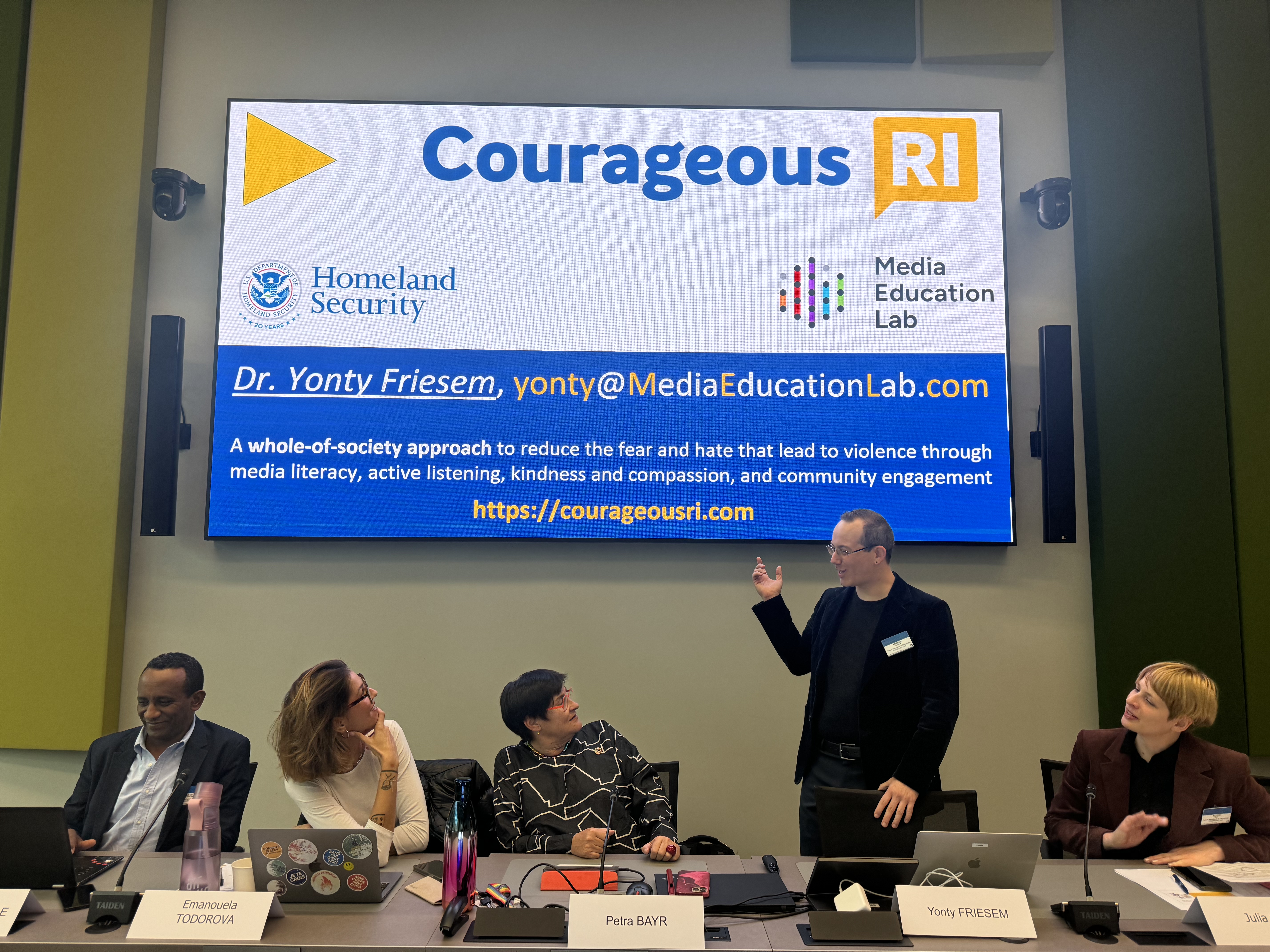 On the bright side, the discussions were inspiring and I wanted to share them here. I came to the conference to present the work of CourageousRI that the Media Education Lab did in the last two years and listening to many other initiatives aiming to strengthen liberal democracies around the work. More than 500 international activists attended and talked about their work fighting every day to sustain and protect democratic practices and institutions. In the last panel, Georgios Katrougalos, UN representative and former Foreign Minister of Greece, stated that populism is not a problem of democracy, it is a symptom of democracy flaws – inequalities. As he explained, the root causes of inequalities in democracy are because of unequal distribution of wealth. It is not because of the populists, but the new liberal policies that keep erupting the democratic institutions and allowed for wealth inequalities. This statement helped put the results of the U.S. election in proportion and context of a global fight that morphed from the cold war socialists again capitalists toward a fight on liberties, accessibility, and voice. The core values of media literacy education.