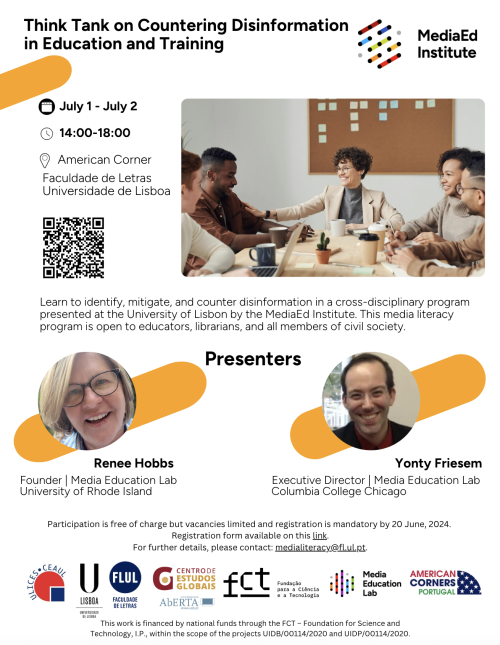 University of Lisbon is doing an outreach summer school for high school students (https://verao.ulisboa.pt/ - the program at FLUL is Letras Abra Mundos - the Arts Open Worlds). As the high scholars learn to navigate the media-saturated environment, they will document their process of analyzing one media message through a short production activity of creating a mini-podcast to share with their peers.