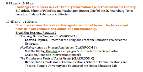 This national leadership summit for college students was developed by the U.S. Memorial Holocaust Museum in partnership with the Media Education Lab at Temple University, the Religious Freedom Project at the Newseum, and the Sustained Dialogue Campus Network. Read Renee's blog about the experience here.