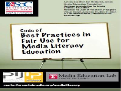 The Code of Best Practices in Fair Use for Media Literacy Education puts an end to copyright confusion! Check out our case study videos, Schoolhouse-Rock style music videos, as well as our readings, activities and lesson plans for high school and college students to learn about copyright and fair use as they apply to teaching and learning with digital media, mass media and popular culture. As copyright advocates, we have used the DMCA exemption process to help ensure that K-12 teachers and students can maintain their fair use of film DVDs.